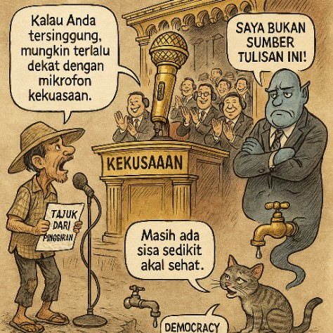 Tajuk ini bukan ditulis oleh oposisi, bukan pula hasil bisikan jin penebar hoaks. Ini hanya suara dari pinggiran, yang kebetulan masih punya akal sehat dan sedikit keberanian. Jika Anda merasa tersinggung, mungkin Anda sedang terlalu dekat dengan kekuasaan. Jika Anda tertawa, selamat, berarti demokrasi kita belum mati total.